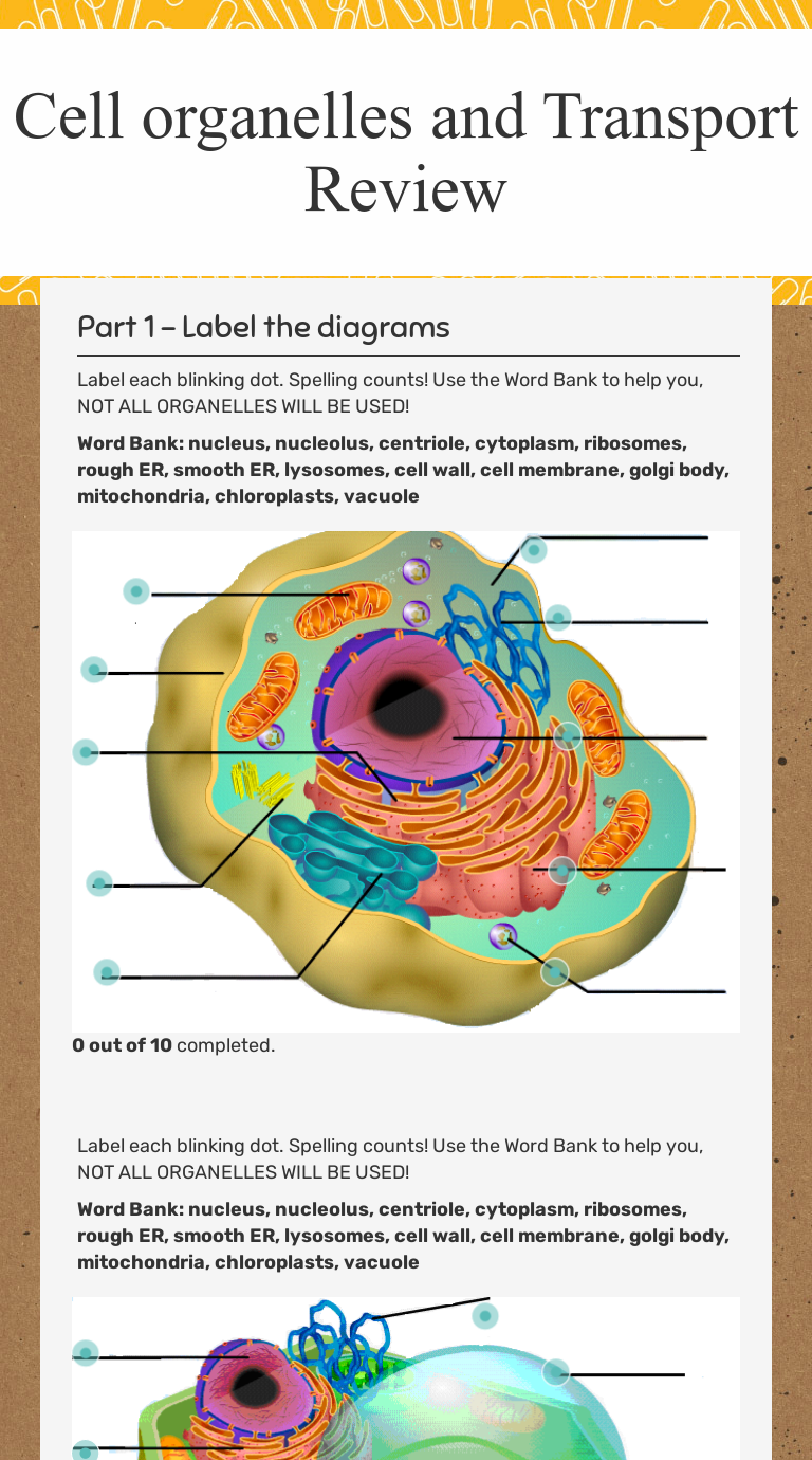 Some of the worksheets for this concept are label the animal and plant cell organelles and structures animal cell cell comparison work label the human cell prokaryotic and eukaryotic cells organelles in eukaryotic cells ada cell ebrate science without work. Some of the worksheets for this concept are cell ebrate science without work, cell diagram to label activity, name cell vocabulary, plant labeling work, cell organelles work sheffield sheffield lake city, cells organelles name directions match the function, organelles in eukaryotic cells, cells and … The plasma membrane defines and encloses the cell. Structure/function cell part stores material within the cell closely stacked, flattened sacs … As you move through this worksheet see if you can match the important parts of the city listed above to the specific organelles found in cells. A cell part may be used more than once. Showing top 8 worksheets in the category cell organelles answer key. Cell organelles worksheet use the table above to fill in the chart complete the following table by writing the name of the cell part or organelle in the right hand column that matches the structure/function in the left hand column. A cell part may be used more than once. Label the parts of an animal cell labels are important features of any scientific diagram. It is selectively permeable ie. The students are expected to identify the 10 parts marked and name them with words from the word bank. 16.01.2022 · cell organelles worksheet complete the following table by writing the name of the cell part or organelle in the right hand column that matches the structure function in the left hand column.